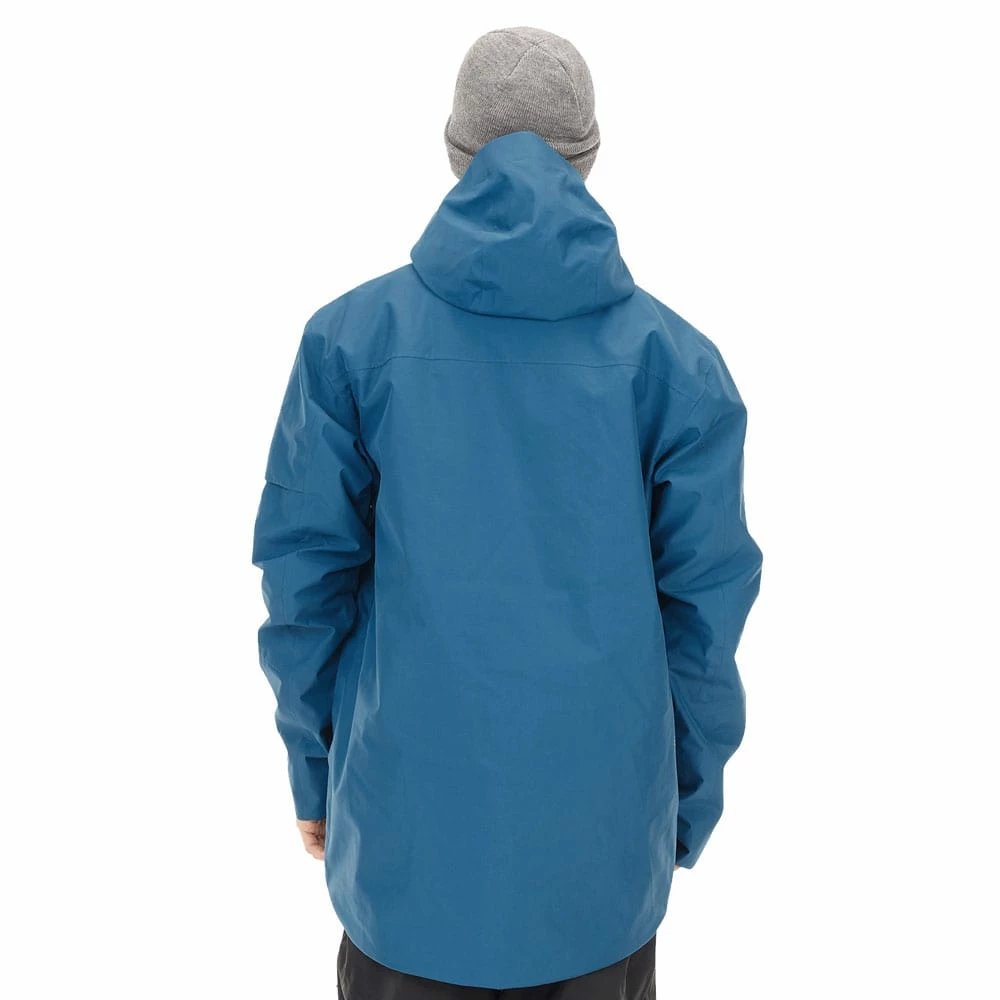 Zu einer beeindruckenden Performance verhelfen eine reguläre Passform, vollständig versiegelte Nähte sowie ein strapazierfähiges Obermaterial. Durch einen hohen Kragen mit weichem Kinnschutz sowie der regulierbaren Kapuze werden empfindliche Stellen des Körpers geschützt. An diese Eigenschaft knüpfen verstellbare Ärmelabschlüsse mit weichen Handgamaschen an. Zudem unterstützt ein elastischer Schneefang im Tragebereich den Schutz vor ungewolltem Feuchtigkeitseindringen.